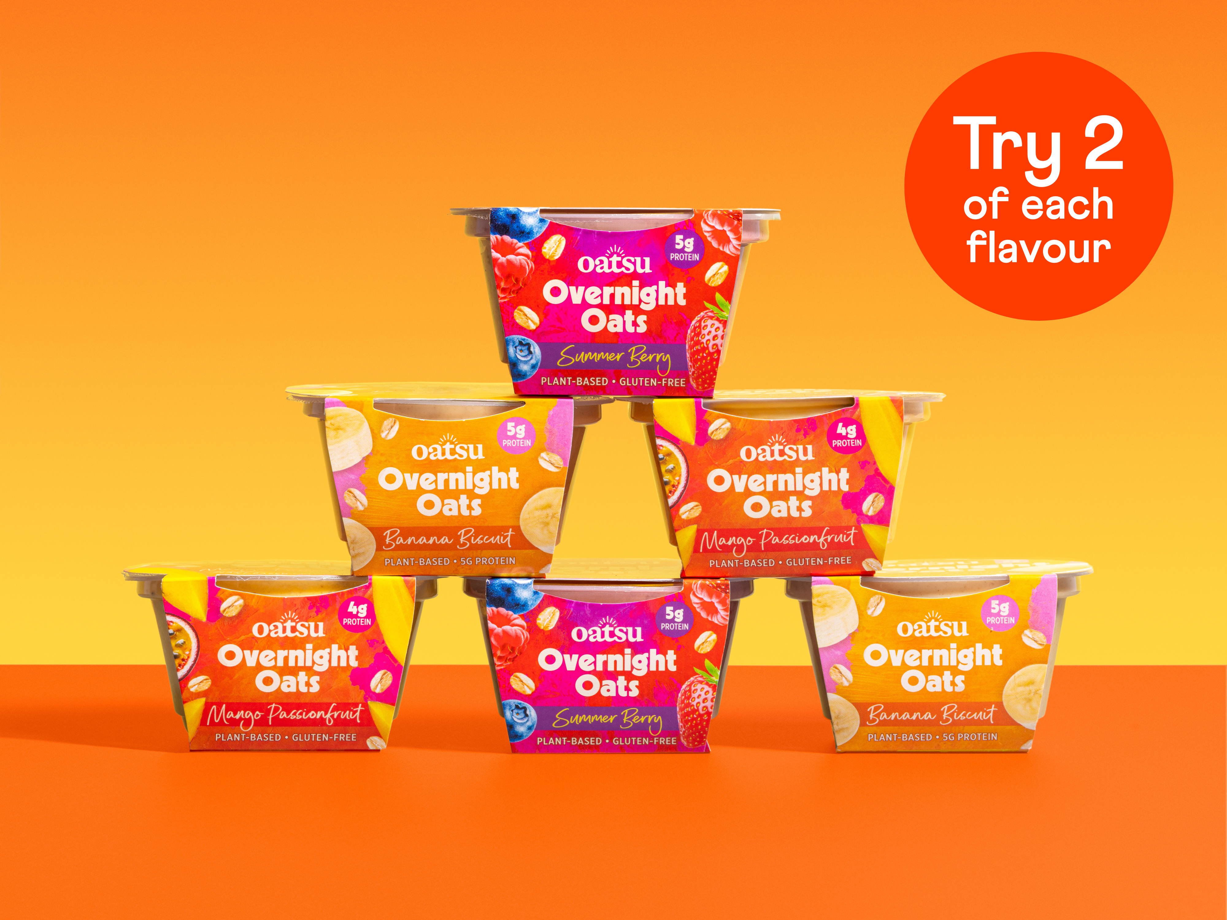 You’ll get 2 of each of our delicious overnight oat flavours, so you can taste your way through the range and discover your favourites.